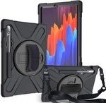 D-Pro 360 Armor Strap Case etui pancerne z uchwytem na rękę i paskiem na ramię do Samsung Galaxy Tab S7 2020 (SM-T870/T875/T878) / S8 2021 (SM-X706) / S9 2023 (SM-X710/X716/X718) / S9 FE (SM-X510/X516/X518) / S10 FE (SM-X520/X526)
