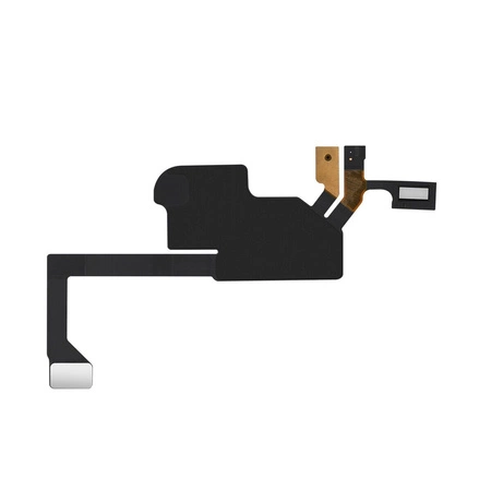 Uwaga: Elementy tej części są sparowane z płytą główną. "Flood illuminator" jest częścią zabezpieczenia Face ID, więc ta funkcja będzie dostępna dopiero po przelutowaniu tego czujnika z macierzystej taśmy. Bez tego zabiegu wszystkie funkcje będą działały poprawnie (tj. mikrofon, czujnik zbliżeniowy z czujnikiem światła), natomiast funkcjonalność Face ID nie będzie przywrócona.