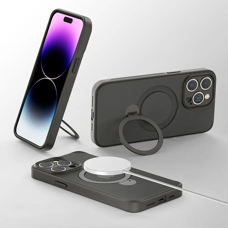 - Matowe hybrydowe etui z magnetycznym pierścieniem Magnet oraz funkcją obrotowej podstawki