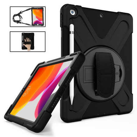 D-Pro 360 Armor Strap Case etui pancerne z uchwytem na rękę i paskiem na ramię iPad 7/8/9 10.2 (Black)