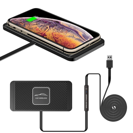 - Mata antypoślizgowa do samochodu z szybką ładowarką indukcyjną (bezprzewodową) dla smartfonów