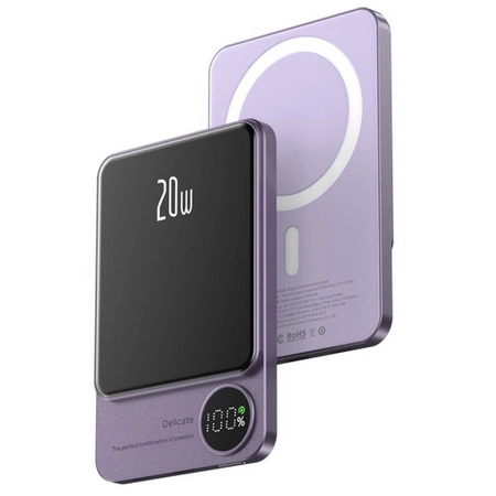 Power Bank 2w1 indukcyjny bezprzewodowy magnetyczny szybki 20W PD do Apple MagSafe iPhone 10000mAh (Fioletowy)