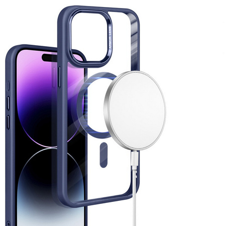 - Etui posiada wbudowany w plecki pierścień magnetyczny do współpracy i lepszego przywierania do akcesoriów MagSafe