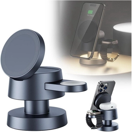 - Magnetyczna ładowarka bezprzewodowa z funkcją lampki do iPhone, Apple Watch i AirPods