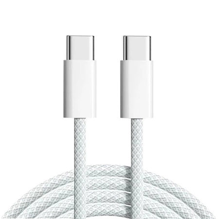 Kabel przewód USB-C do USB-C Type-C do szybkiego ładowania PD 60W nylonowy oplot do Apple iPad mini/Air/Pro iPhone 15/16/Pro/Plus/Max 100cm 1m (Biały)