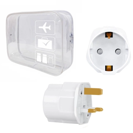 - Przejściówka podróżna z uziemieniem do podłączenia urządzeń w krajach: Wielka Brytania (UK), Irlandia, Szkocja, Hongkong, Emiraty Arabskie, Cypr, Malezja, Singapur (dokładna lista poniżej)