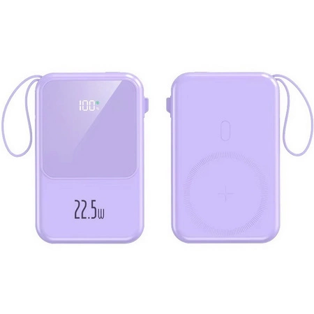 Power Bank D-Pro M2Cord LED indukcyjny magnetyczny 2x kabel USB-C + Lightning szybkie ładowanie 22.5W PD MagSafe 10000mAh (Fioletowy)