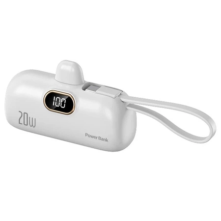 Powerbank D-Pro Mini Capsule LED Lightning + kabel USB-C mały poręczny kieszonkowy breloczek 5000mAh (Biały)