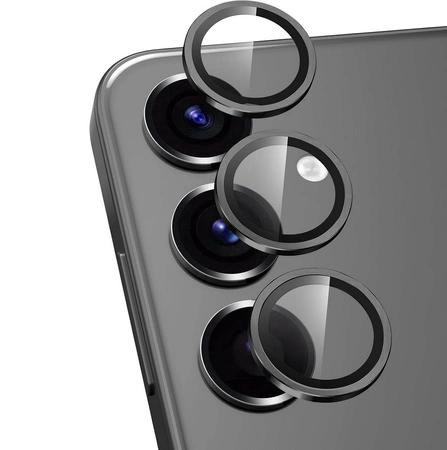 3x Szkło na aparat kamerę szybka ochronna z metalowym ringiem z aplikatorem do Samsung Galaxy S25 (SM-S931) (Czarny)