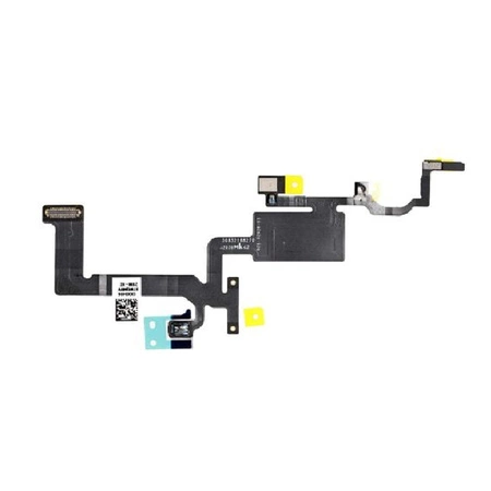 Uwaga: Elementy tej części są sparowane z płytą główną. "Flood illuminator" jest częścią zabezpieczenia Face ID, więc ta funkcja będzie dostępna dopiero po przelutowaniu tego czujnika z macierzystej taśmy. Bez tego zabiegu wszystkie funkcje będą działały poprawnie (tj. mikrofon, czujnik zbliżeniowy z czujnikiem światła), natomiast funkcjonalność Face ID nie będzie przywrócona.