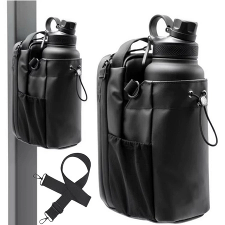 Zestaw: Butelka termiczna bidon ze stali nierdzewnej 30cm 0,95l 950ml + Torba magnetyczna (Czarny)