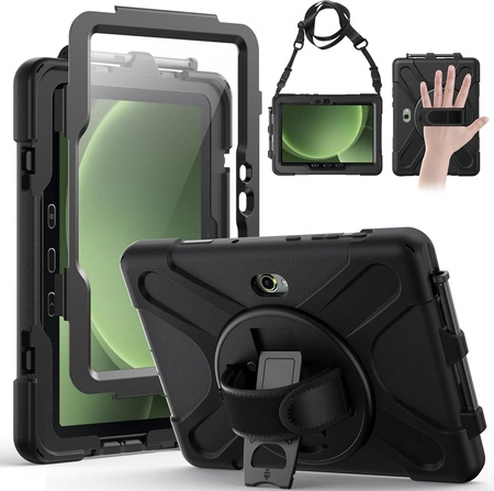Etui D-Pro 360 Armor Strap Case obudowa pancerna z uchwytem na rękę i paskiem na ramię z wbudowaną folią na ekran do Samsung Galaxy Tab Active Pro 10.1 (T540/T545/T547) / Tab Active 4 Pro (T630/T636/T638) / Tab Active 5 Pro (X350/X356)