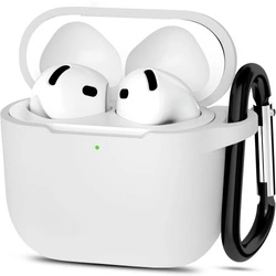 Etui D-Pro Silicone Case silikonowa obudowa z metalowym karabińczykiem do Apple AirPods 4 (2024) (Biały)