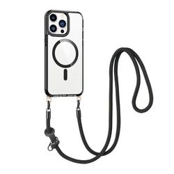 Etui D-Pro Crossbody T-Crystal Magsafe na sznurku z demontowalnym paskiem na ramię smycz na szyję do iPhone 16 Pro (Czarny)